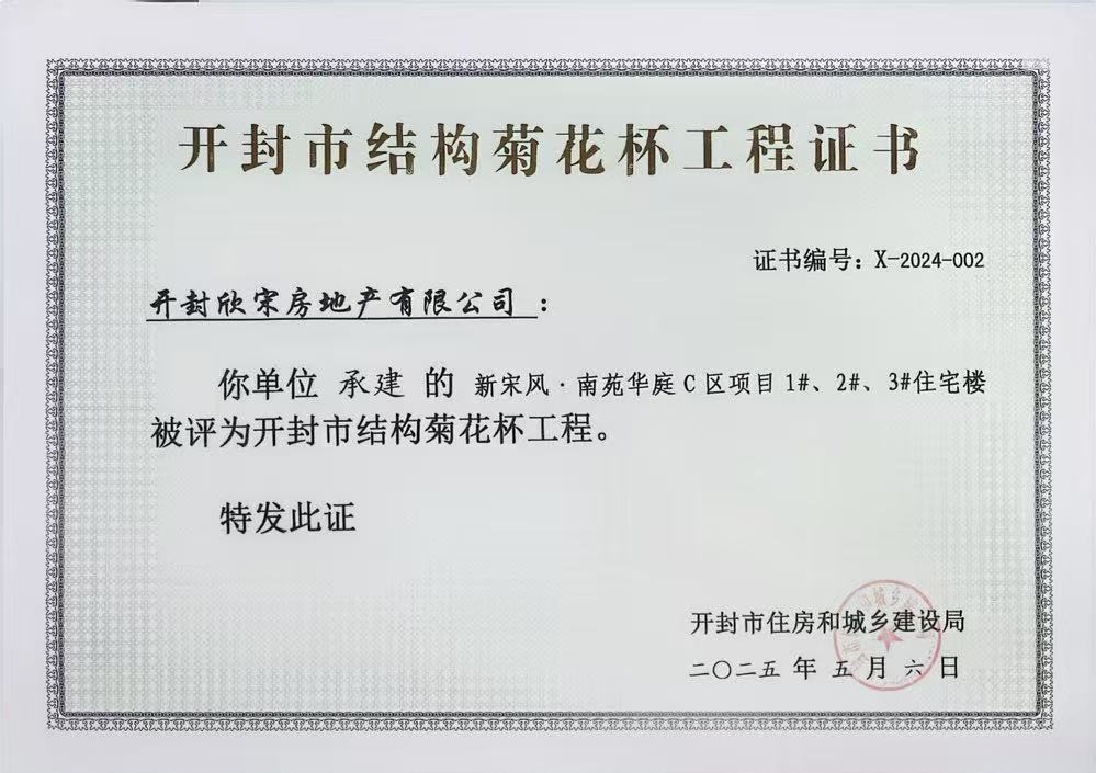 - 新宋風(fēng)·南苑華庭項(xiàng)目榮獲“開(kāi)封市結(jié)構(gòu)菊花杯工···[2025-05-15]